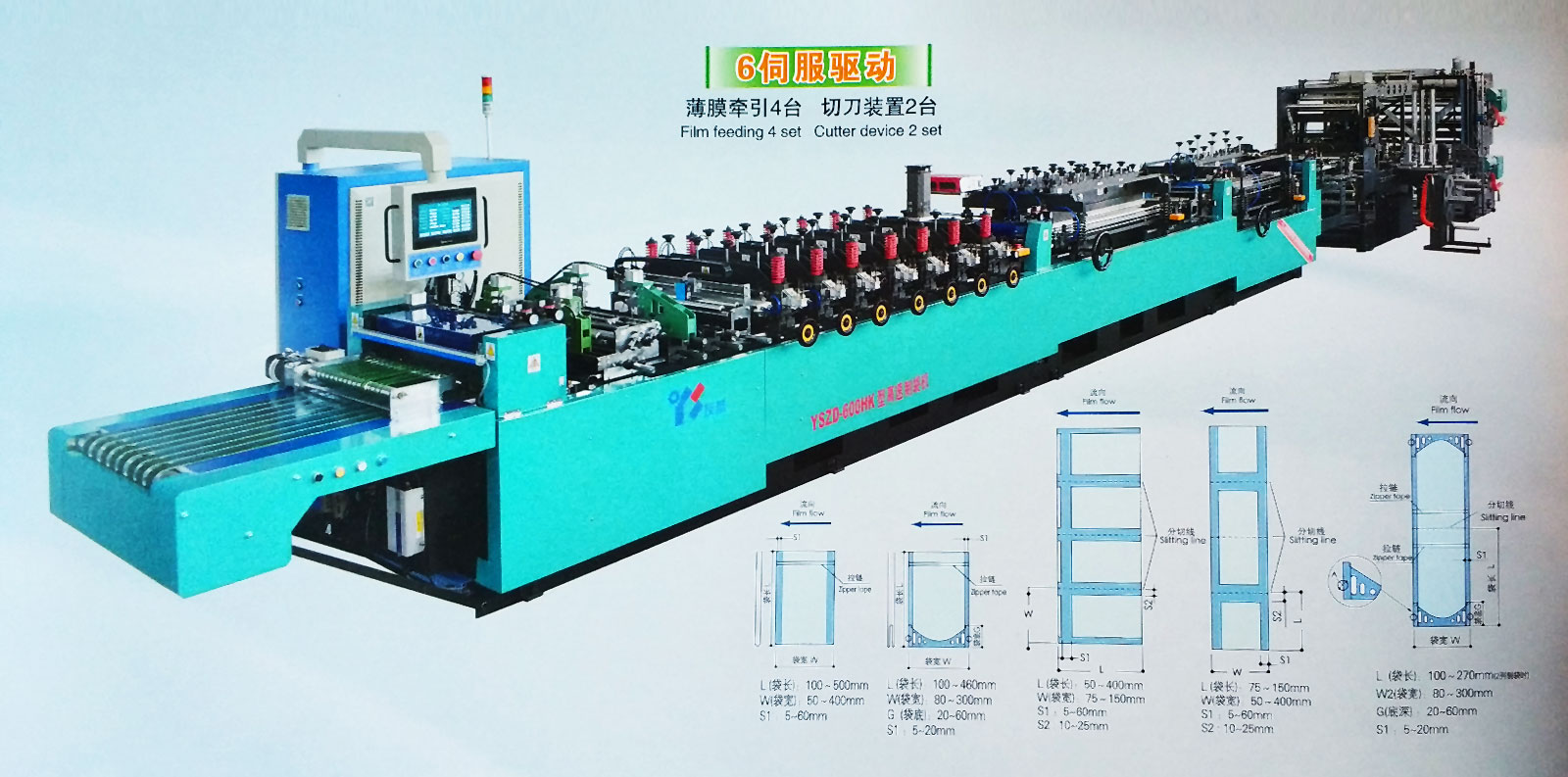 | YSZD-600HK 三邊封、站立袋、拉鏈袋、無接縫站立拉鏈袋高速全自動(dòng)制袋機(jī) |